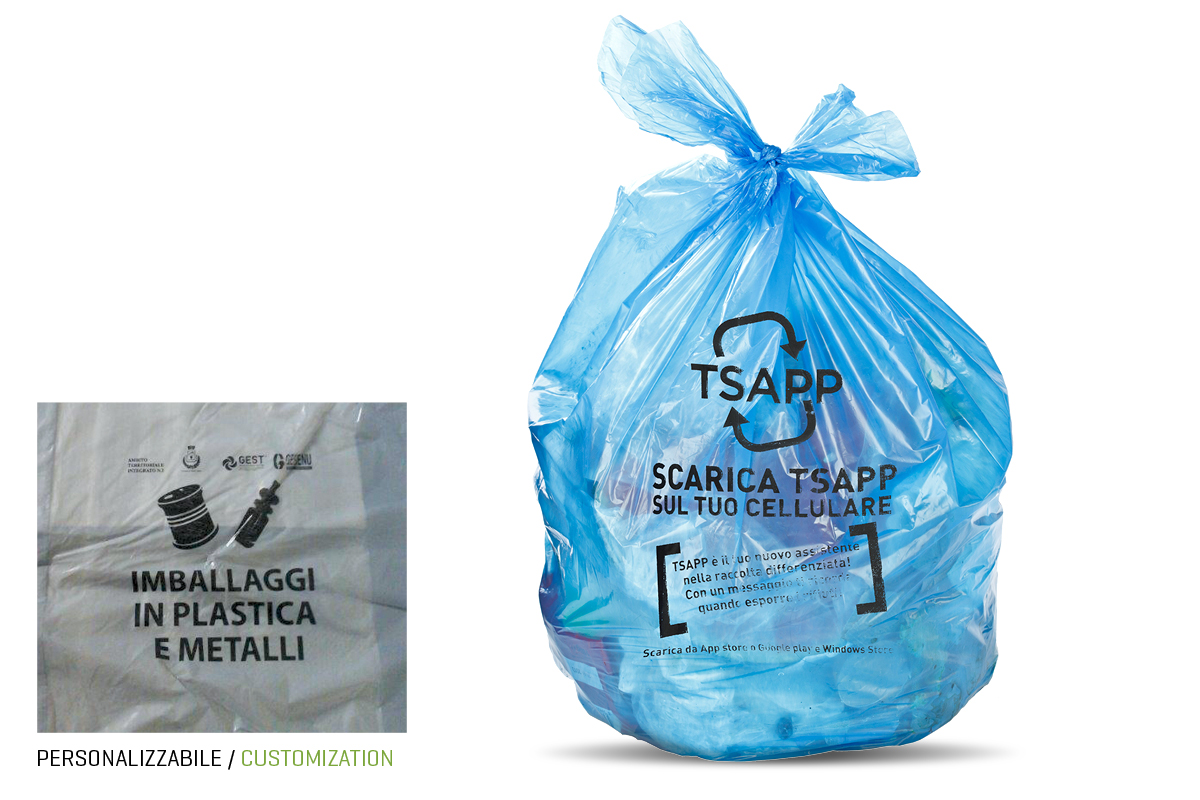 Sacchi per raccolta differenziata LDPE/HDPE in vari colori e spessori , con o senza stampa personalizzata. Prodotti con materiali privi di odori sono idonei a tutti gli ambienti.